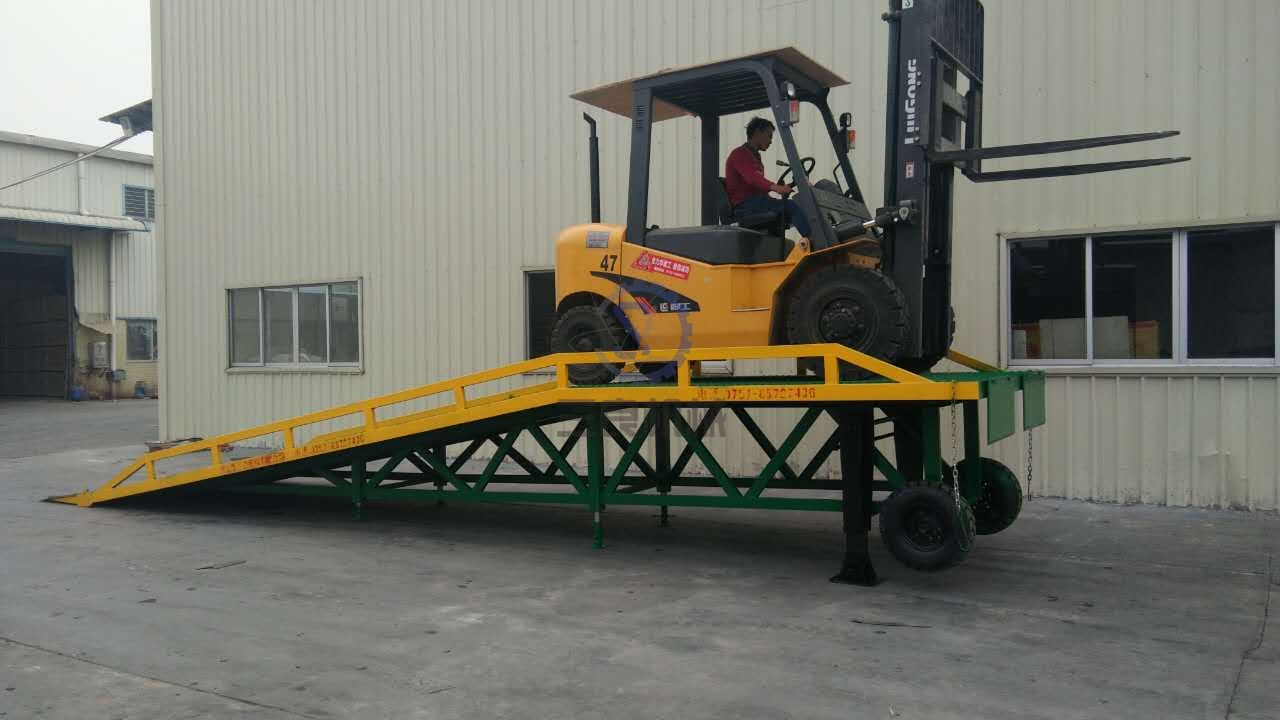 產(chǎn)品規格:根據承載能力產(chǎn)品分為:6、8、10、12噸登車(chē)橋,移動(dòng)式登車(chē)橋是叉車(chē)配合使用的貨物裝卸輔助設備,可根據汽車(chē)車(chē)廂的高低調節高度,叉車(chē)可以直接通過(guò)本設備駛入車(chē)廂內部批量作業(yè),設備